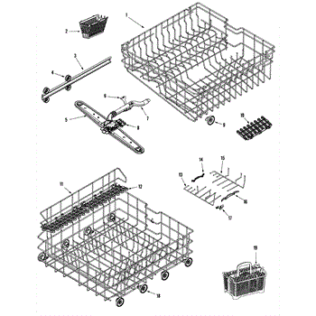 Note: New rack no longer includes removable tines or cup shelf. This part is a lower dishrack. The lower dishrack is the lower shelf of a dishwasher that holds plates, bowls, and utensils. To remove the old dishrack, simply pull it out and lift the wheels up from its track. Set it off the side, and lift the new dishrack. Slide it into its track and make sure it is locked in. If it is gliding in and out in a smooth way, it has been installed properly.This genuine replacement OEM part is sold individually and is compatible with Whirlpool brands include Whirlpool, Maytag, KitchenAid, Jenn-Air, Amana, Magic Chef, Admiral, Norge, Roper, and Sears/Kenmore brand appliances.