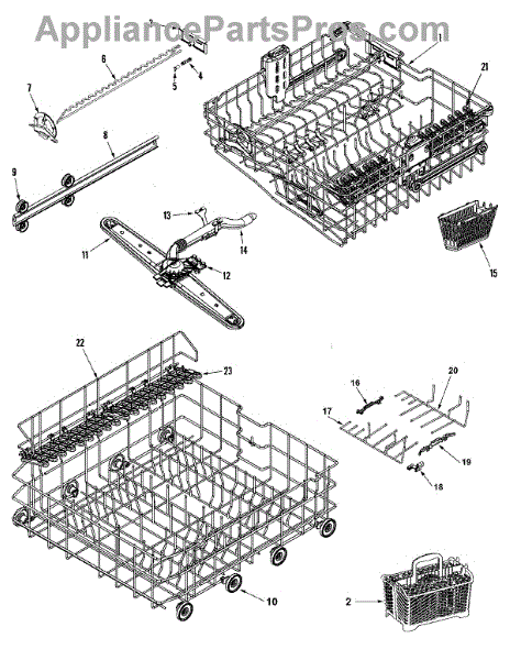 Note: New rack no longer includes removable tines or cup shelf. This part is a lower dishrack. The lower dishrack is the lower shelf of a dishwasher that holds plates, bowls, and utensils. To remove the old dishrack, simply pull it out and lift the wheels up from its track. Set it off the side, and lift the new dishrack. Slide it into its track and make sure it is locked in. If it is gliding in and out in a smooth way, it has been installed properly.This genuine replacement OEM part is sold individually and is compatible with Whirlpool brands include Whirlpool, Maytag, KitchenAid, Jenn-Air, Amana, Magic Chef, Admiral, Norge, Roper, and Sears/Kenmore brand appliances.