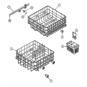 This is an upper dish rack assembly for dishwashers. It is located in the top section of the dishwasher and is meant to ensure dishes stay in place while the dishwasher is running. The dish rack assembly is durable but can experience damage, stains, or other issues. This may make it unsuitable for holding dishes in the appliance. If the part is damaged or malfunctioning, it should be replaced with a new part.This is a simple replacement that takes only a few minutes to complete. First, open up the dishwasher. Remove the bottom rack if desired to create more room to work with the upper dish rack assembly. Take a small flathead screwdriver and use it to release the retaining tabs located on the stop clips. Remove the stop clips and the old dish rack assembly will slide out. Align the new assembly and slide it into place before reassembling other small parts.This upper dish rack assembly is used as an authentic OEM replacement part for dishwashers manufactured by Maytag, Norge, Jenn Air, Admiral, Amana, Crosley, and Magic Chef. The part is sold as an individual component.