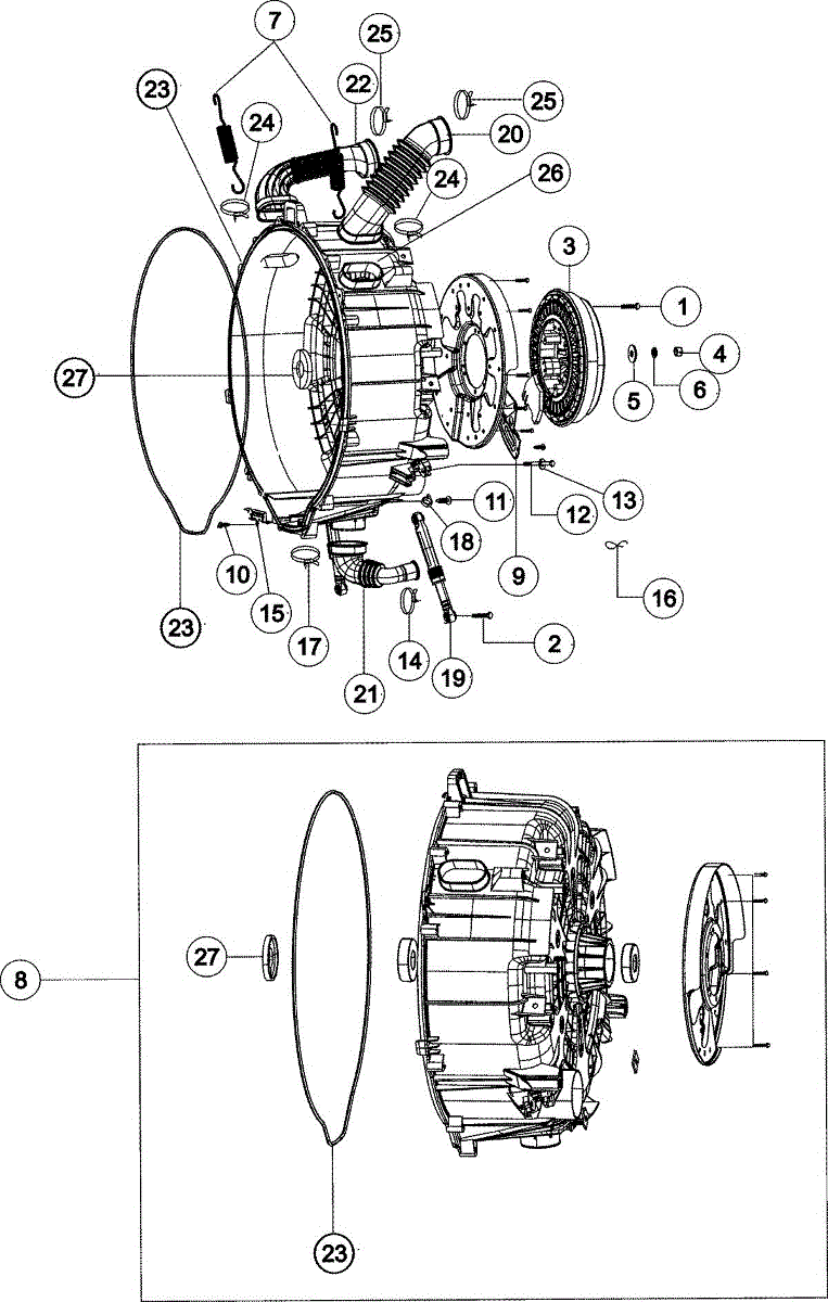 The Hose Clamp is an OEM part for Whirlpool appliances. It secures hoses in place, ensuring a tight connection and preventing leaks in various systems such as washing machines, dishwashers, and refrigerators. This clamp is crucial for maintaining the integrity of the water or air lines it secures.