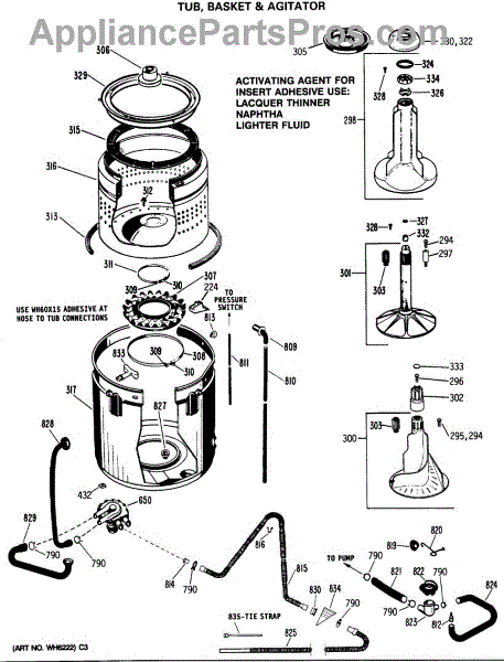 Parts for Ge WWA8990SALAA: 05 - Tub, Basket & Agitator Parts