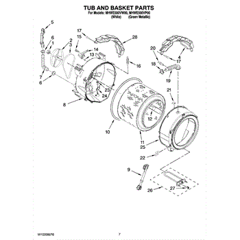 This tub clamp secures a flexible seal or hose to the appliance's tub, maintaining a tight, leak-resistant connection. Replace a weakened or damaged clamp to stop leaks and keep the tub joint stable during operation.