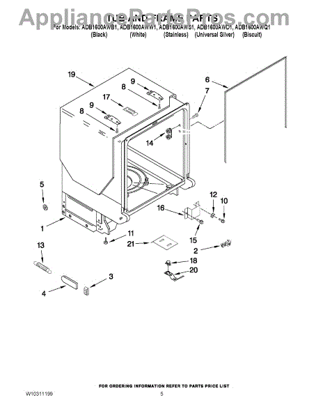 Parts for Maytag ADB1600AWB1: 05 - Tub And Frame Parts