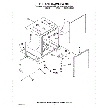 The Gasket is an OEM part for Whirlpool dishwashers. This gasket seals the gap between the dishwasher door and the main tub, preventing water from leaking out during the wash cycle. It ensures a watertight seal that helps maintain the efficiency and performance of the dishwasher.