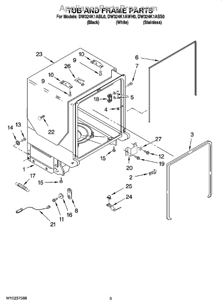 The Gasket is an OEM part for Whirlpool dishwashers. This gasket seals the gap between the dishwasher door and the main tub, preventing water from leaking out during the wash cycle. It ensures a watertight seal that helps maintain the efficiency and performance of the dishwasher.