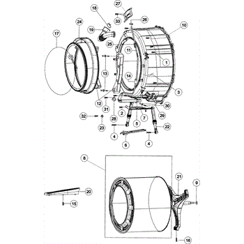 This flexible door boot seal lines the washer's door opening and seals the gap between the tub and front panel, helping keep wash water contained and preventing leaks from the front of the machine.