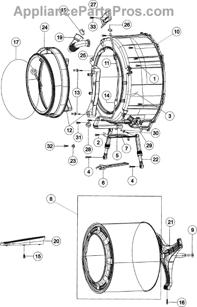 This flexible door boot seal lines the washer's door opening and seals the gap between the tub and front panel, helping keep wash water contained and preventing leaks from the front of the machine.