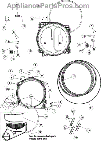 This upper and lower air duct assembly includes the lint screen.