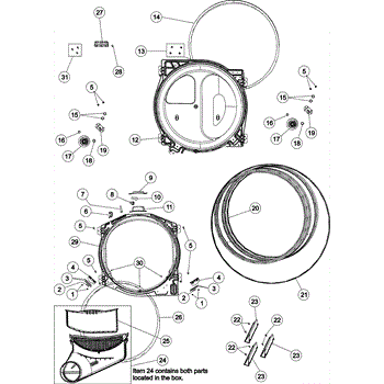 This upper and lower air duct assembly includes the lint screen.