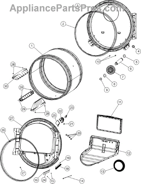 This part is a replacement dryer tub. If the current dryer tub is broken or defective, this part can be used for replacement. It is intended for use with a variety of dryer models. The dryer tub is what holds clothes or materials that need to be dryer and rotates them in order to ensure they are dried sufficiently. Over time or with regular appliance use, this part may corrode, crack, dent, bend, or be otherwise damaged, requiring replacement. Ensure the appliance is entirely disconnected from the power source before attempting any repairs. It's recommended that work gloves are worn for protection.This is a genuine OEM part made by Whirlpool and has been sourced directly from the manufacturer. This dryer tub is suitable for use on a variety of dryer models manufactured by Whirlpool, Maytag, Crosley, and some other brands. It is sold individually.