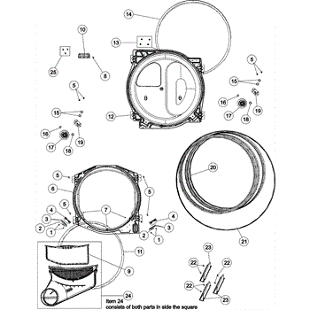 This upper and lower air duct assembly includes the lint screen.