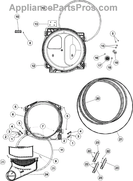 This upper and lower air duct assembly includes the lint screen.