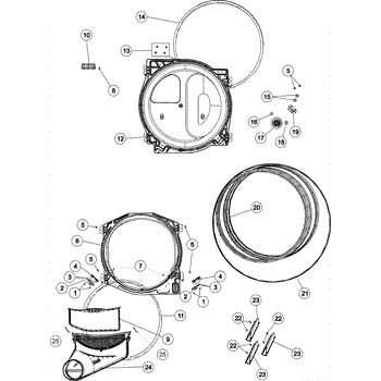 This upper and lower air duct assembly includes the lint screen.