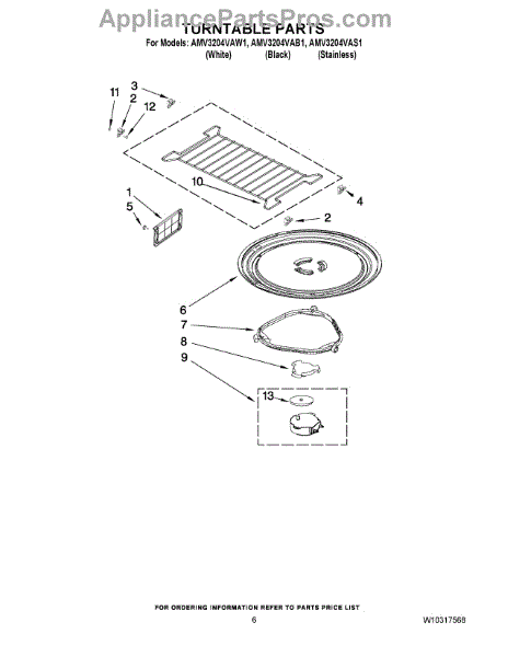 *** Note: This glass tray has 3 partial-circles to engage the coupler. In some cases, the factory used a tray that has 3 triangles. For that glass tray use part# W11367904. ***