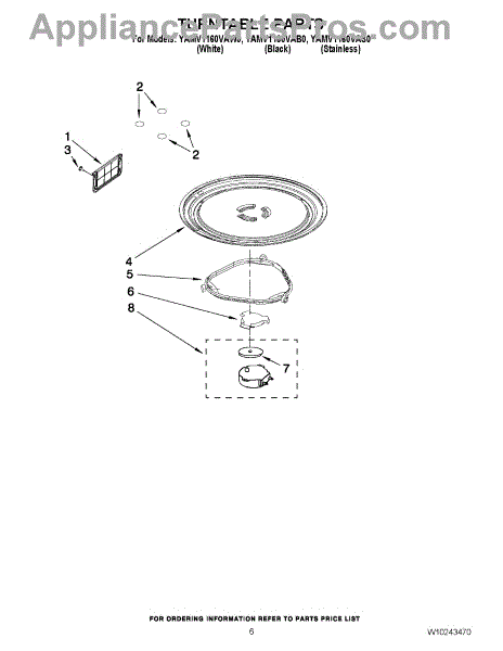 *** Note: This glass tray has 3 partial-circles to engage the coupler. In some cases, the factory used a tray that has 3 triangles. For that glass tray use part# W11367904. ***