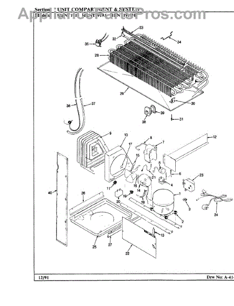 • Access the rear machine compartment; remove the relay cover on the compressor. Note wire positions, pull the old relay straight off the compressor pins, transfer wires, and fully seat the new relay in the same orientation