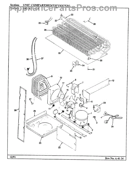 Plastic defrost pan. Evaporator pan hangs from side rails and rests on compressor.