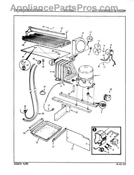 Plastic defrost pan. Evaporator pan hangs from side rails and rests on compressor.