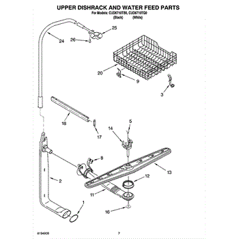 Upper spray arm with heatseal that restores water distribution to the dishwasher's upper rack for improved cleaning and rinsing. Replace a worn, cracked, clogged, or leaking upper spray arm to recover normal spray coverage. What it does: