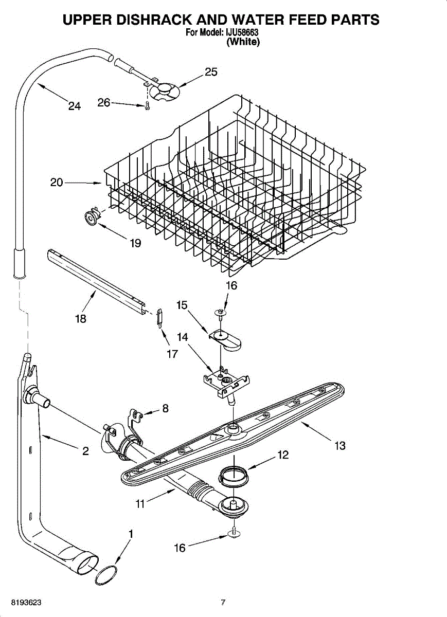 Upper dishrack assembly for dishwashers. Slides on tracks to hold dishes on the top shelf. Replace if cracked, rusted, broken tines, or no longer stable.