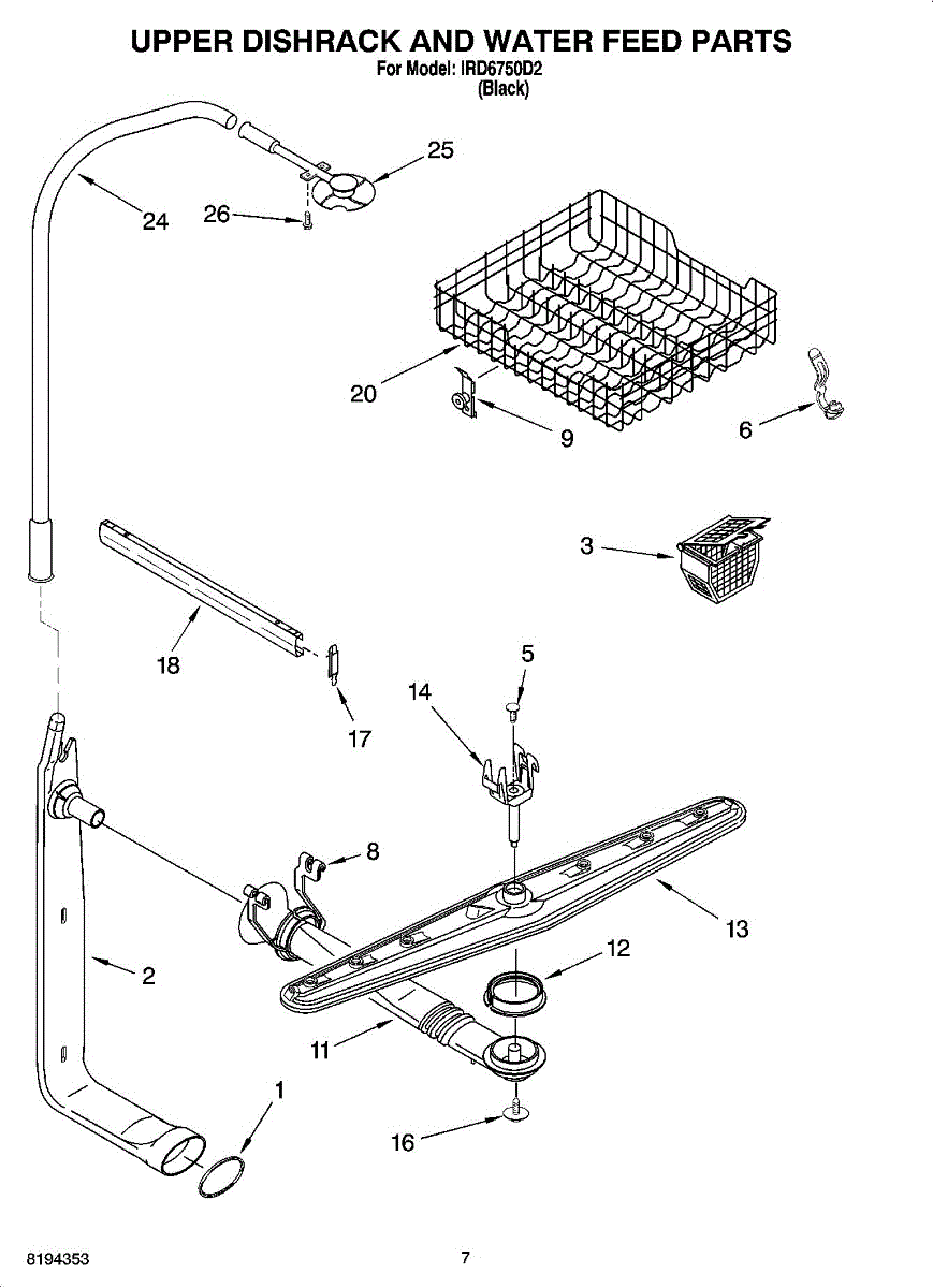 Water supply tube for dishwashers. Connects water inlet to spray system. Replace if tube is cracked, leaking, kinked, or damaged during service.