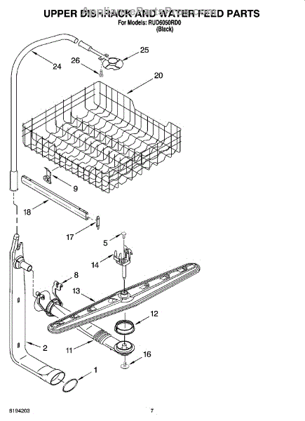 Parts for Whirlpool RUD6050RD0: 05 - Upper Dishrack And Water Feed Parts
