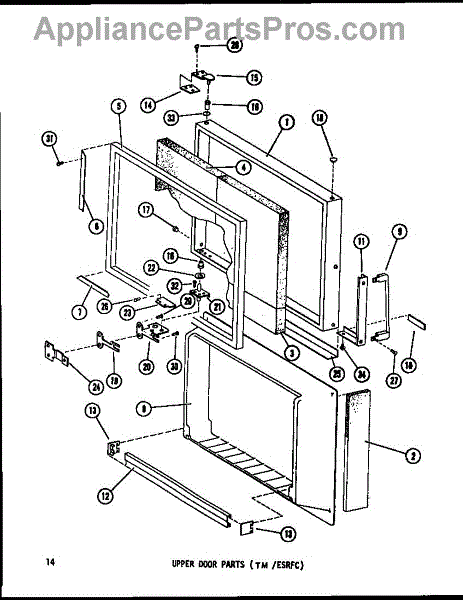 Parts for Amana ESRFC16F / P7565805W: 05 - Upper Door Parts
