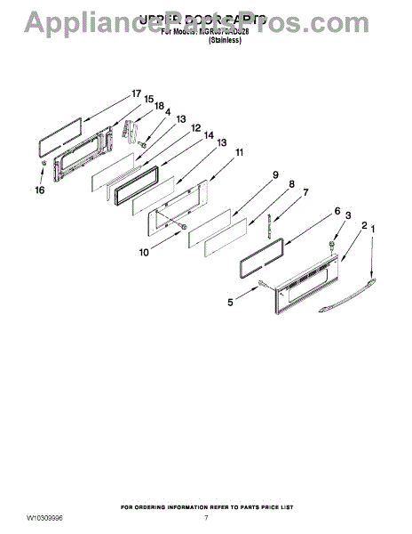 This factory screw secures appliance components to their mounting points. Replace missing, worn, or stripped hardware to restore a tight fit, proper alignment, and quieter operation across the affected assembly.
