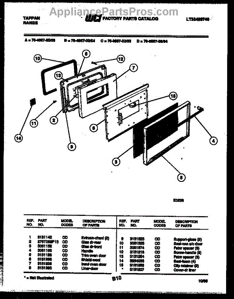 Parts for Frigidaire 76-8667-66-03: 05 - Upper Oven Door Parts