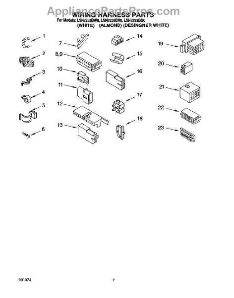 Parts for Whirlpool LSN7233BW0: 05 - Wiring Harness Parts