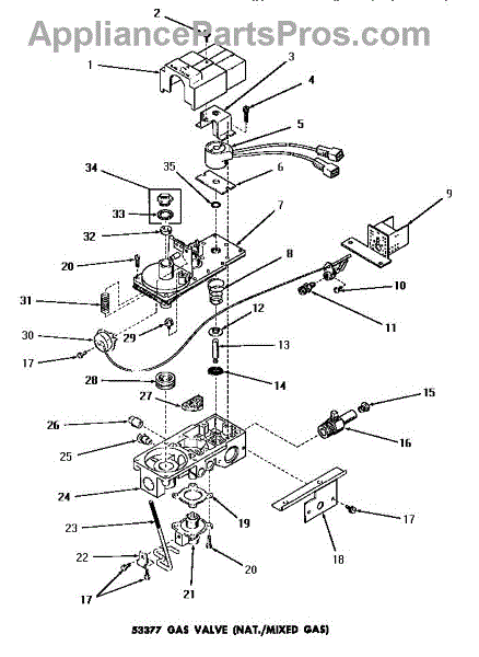 Parts for Amana DG3021: 06 - 53377 Gas Valve (Nat. / Mixed Gas) Parts
