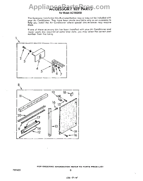 Parts for Whirlpool AC1002XS0: 06 - Accessory Kit Parts
