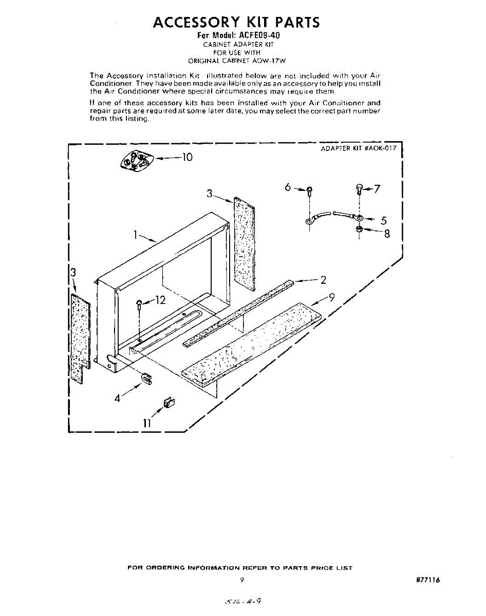 Parts for Whirlpool ACFE0940: 06 - Accessory Kit Parts