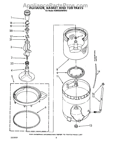 Parts for Kitchenaid KAWE564WWH2: 06 - Agitator, Basket And Tub Parts