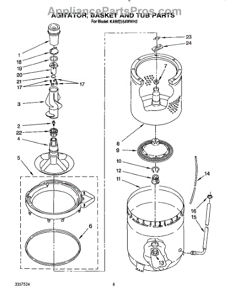 Parts for Kitchenaid KAWE564WWH3: 06 - Agitator, Basket And Tub Parts