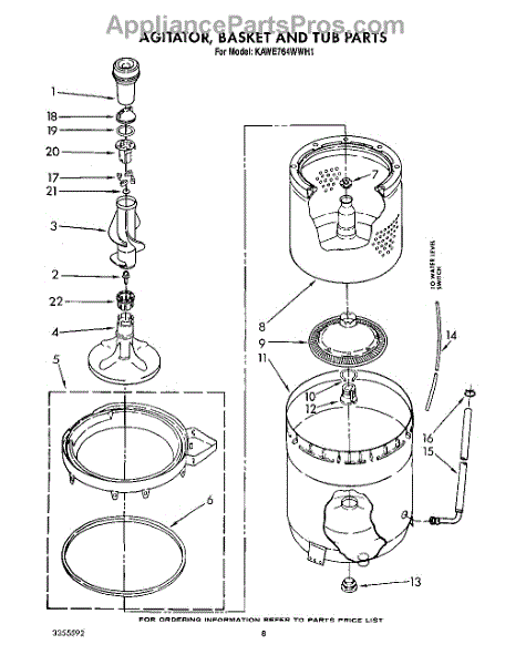Parts for Kitchenaid KAWE764WAL1: 06 - Agitator, Basket And Tub Parts