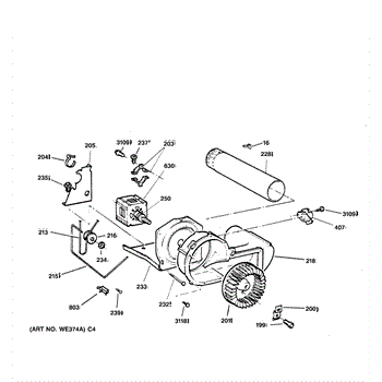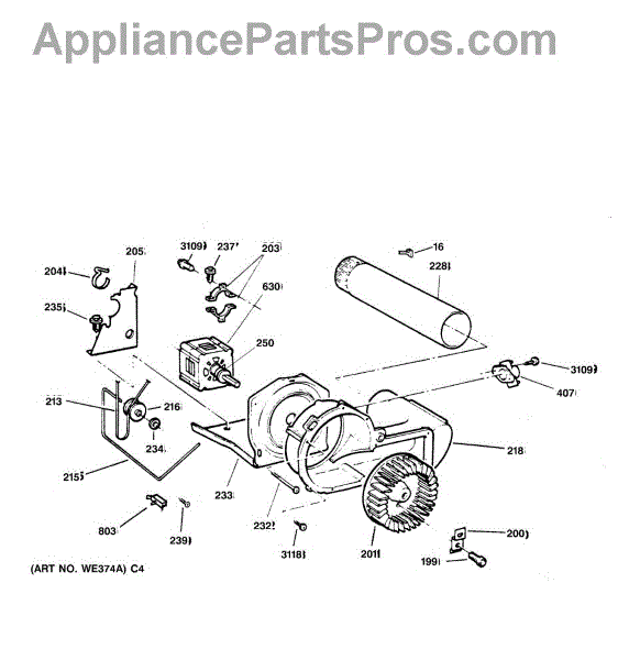 The Blower Wheel is an OEM replacement part for GE dryers. It has a role in the air circulation within the dryer, aiding in the even and efficient drying of clothes. The blower wheel, connected to the motor, helps in expelling the moist air out of the dryer through the exhaust vent during the drying cycle. Causes of a malfunctioning blower wheel are typically wear and tear from regular use, the accumulation of lint or debris, or damage to the wheel’s fins or central hub, which can impact its rotation and air circulation capability. Symptoms of a bad Blower Wheel include: