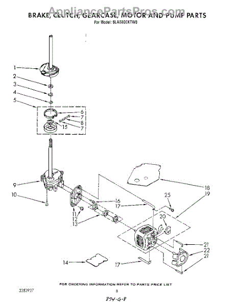 Parts for Whirlpool 6LA5800XTG0: 06 - Brake, Clutch, Gearcase, Motor And Pump Parts