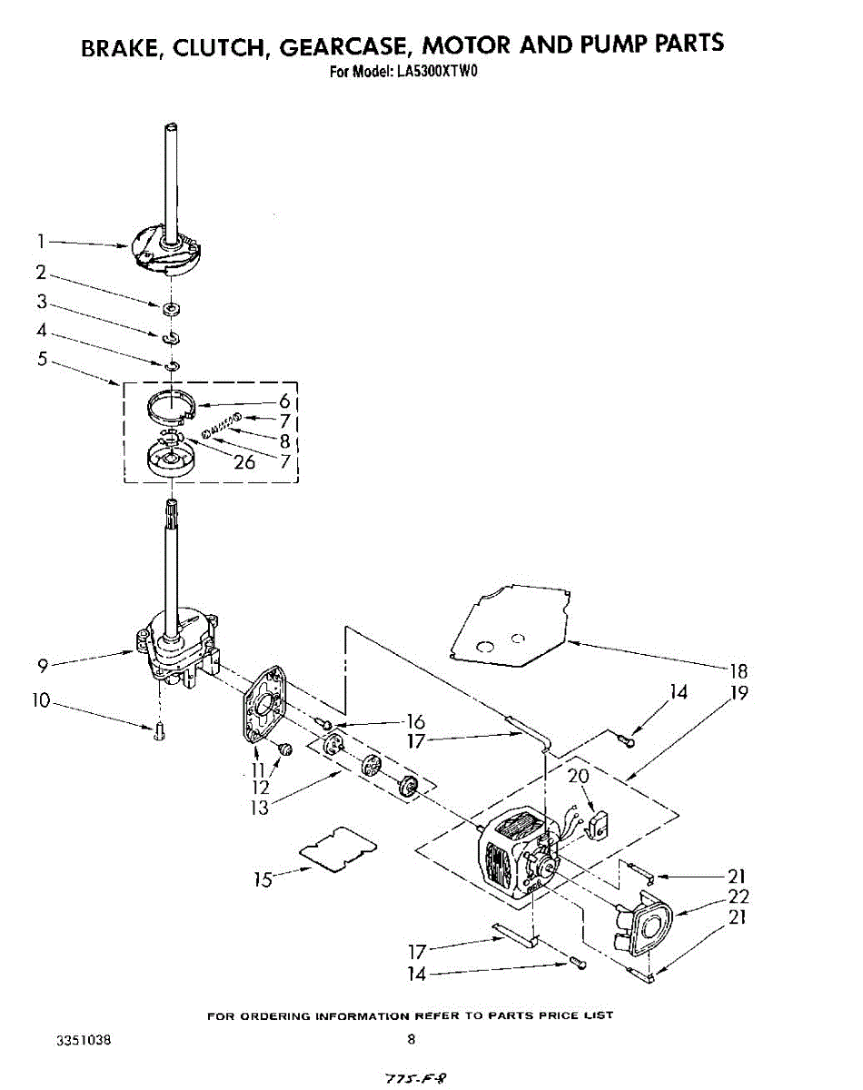 Parts for Whirlpool LA5300XTW0: 06 - Brake, Clutch, Gearcase, Motor And Pump Parts