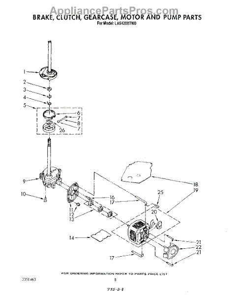 Parts for Whirlpool LA5420XTW0: 06 - Brake, Clutch, Gearcase, Motor And Pump Parts