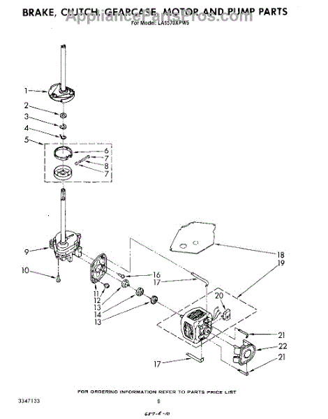 Parts for Whirlpool LA5570XPW5: 06 - Brake, Clutch, Gearcase, Motor And Pump Parts