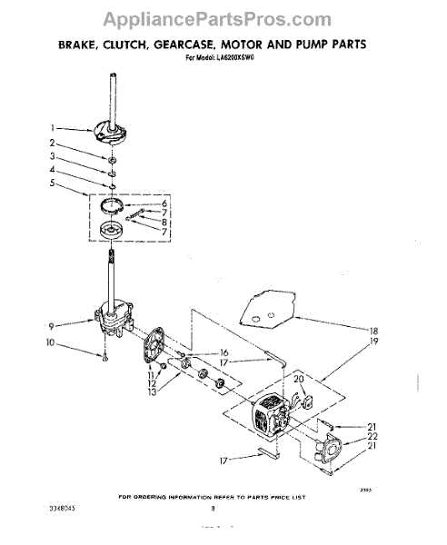 Parts for Whirlpool LA6200XSW0: 06 - Brake, Clutch, Gearcase, Motor And Pump Parts