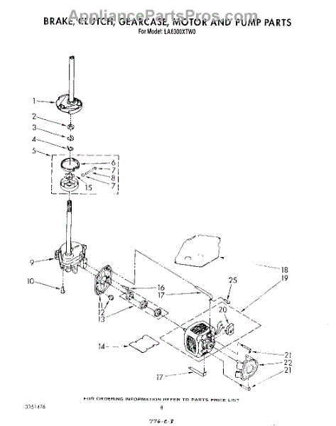 Parts for Whirlpool LA6300XTF0: 06 - Brake, Clutch, Gearcase, Motor And Pump Parts