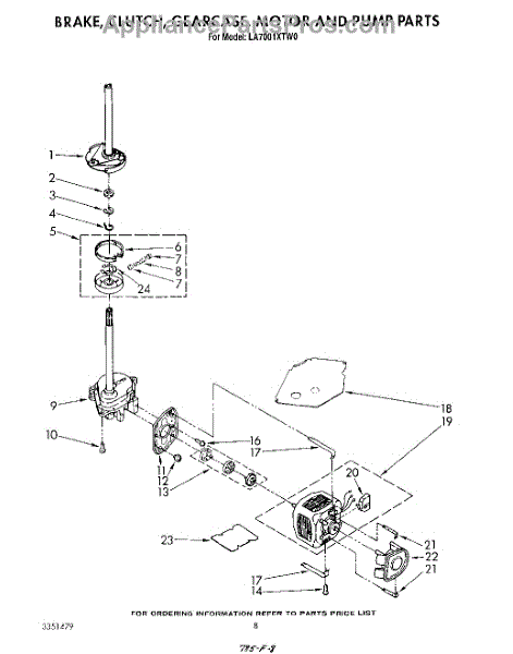 Parts for Whirlpool LA7001XTW0: 06 - Brake, Clutch, Gearcase, Motor And Pump Parts