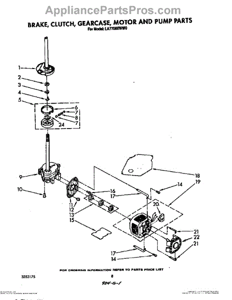 Parts for Whirlpool LA7700XWN0: 06 - Brake, Clutch, Gearcase, Motor And Pump Parts