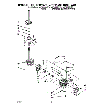 Parts for Whirlpool LBR6233AN0: 06 - Brake, Clutch, Gearcase, Motor And Pump Parts