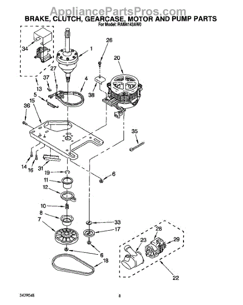 Parts for Whirlpool RAM4143AL0: 06 - Brake, Clutch, Gearcase, Motor And Pump Parts
