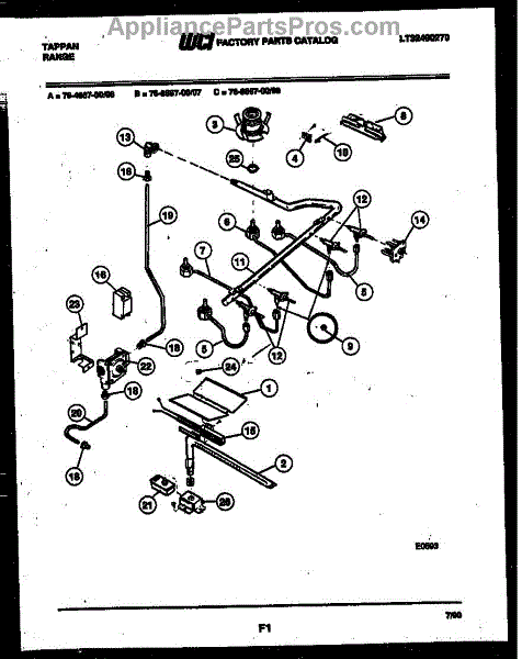 Parts for Frigidaire 76-8667-23-08: 06 - Burner, Manifold And Gas Control Parts