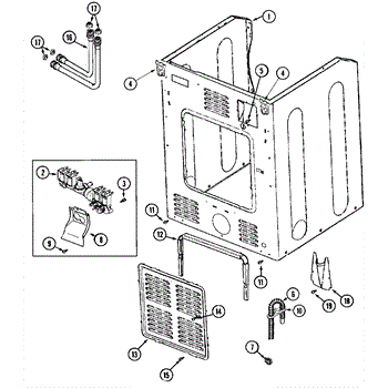 This small strainer sits inside the washer's water inlet valve and screens out sand, rust, and sediment from the supply lines. Replacing a clogged or missing screen restores normal fill flow and helps protect the valve.