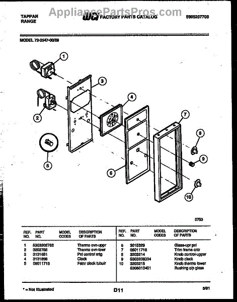 Parts for Frigidaire 72-2547-23-09: 06 - Control Panel Parts